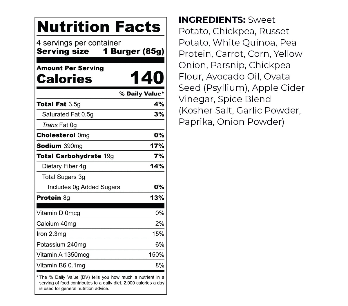 Actual Veggies’ Veggie Burgers are made with a blend of fresh vegetables, legumes, and grains. These ingredients provide a good source of plant-based protein, fiber, and essential vitamins and minerals, making these burgers both nutritious and satisfying.