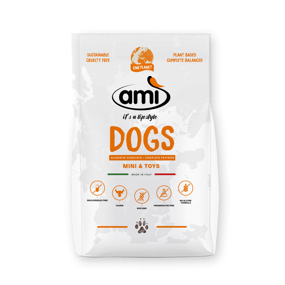 Mini and toy dogs need something that’s easy to munch. Ami’s Small Kibble Dog Food is specifically made for them! It’s nutrient-dense and packed with all the plant-based goodness your adult dog needs.