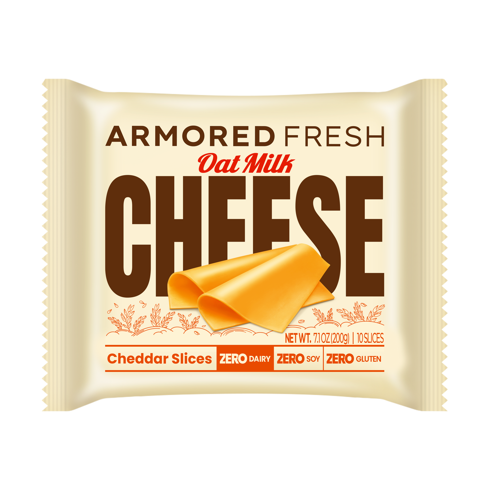 Ditch dairy easily! Armored Fresh’s Oat Milk Cheddar Slices are a take on your classic cheddar. These slices are made with oats, allowing them to still stay as creamy as their counterparts. You get ten slice a pack!