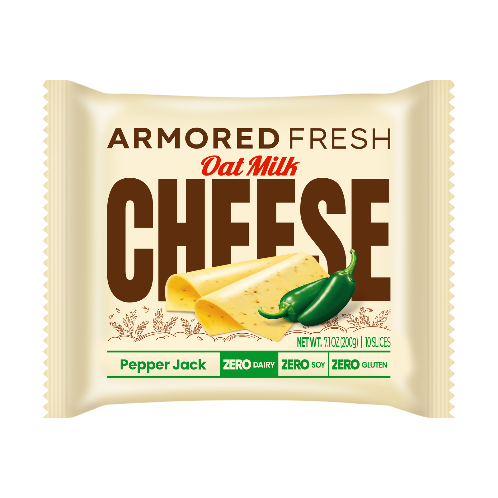 Armored Fresh’s Oatmilk Pepper Jack Slices is, as the name suggests, made with oats! With its dairy-free recipe, it keeps its creamy texture and distinct heat and spice. Use this vegan cheese to kick your dishes up a notch!