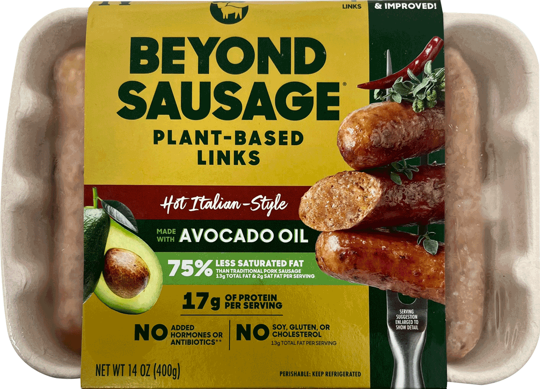 Beyond Hot Italian Sausage is the world's first fresh, vegan sausage that looks, sizzles, and satisfies just like pork.