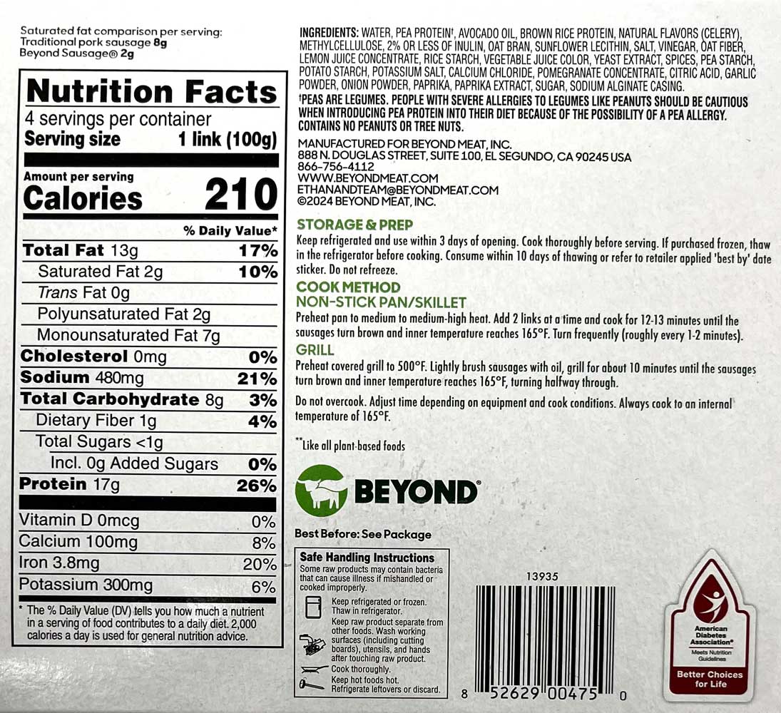 Beyond Sausage is certified soy-free, gluten-free, and GMO-free, ensuring it meets a variety of dietary preferences and needs.