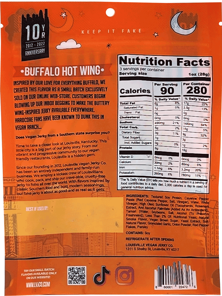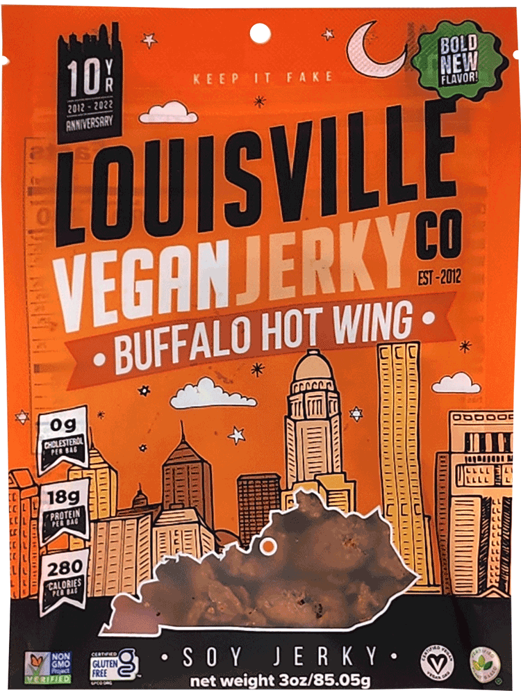 This tasty new vegan jerky flavor by the talented folks at Louisville Vegan Jerky Co. combines buttery buffalo-style spicy jerky and gives it the perfect hint of garlic, dill and onion for a truly unique flavor combination.