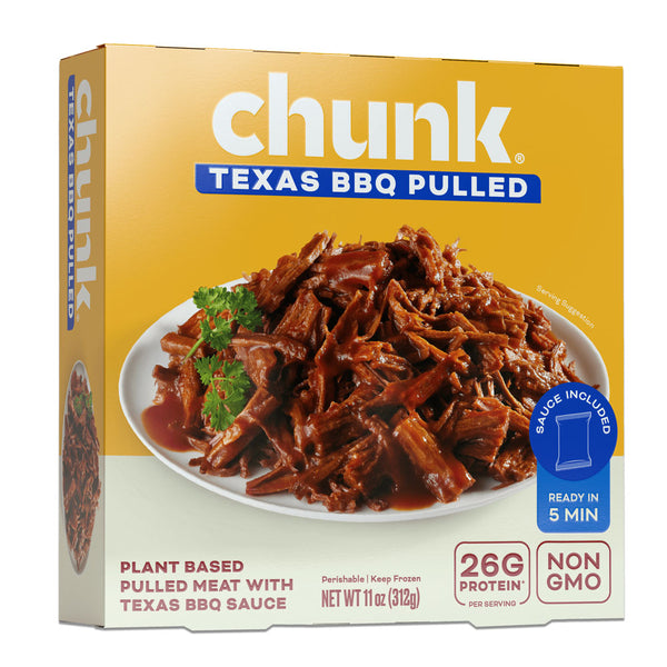 Chunk’s Plant-Based Texas BBQ Pulled delivers tangy-sweet, pit-smoke flavor with the rich texture of traditional slow cooked meat.