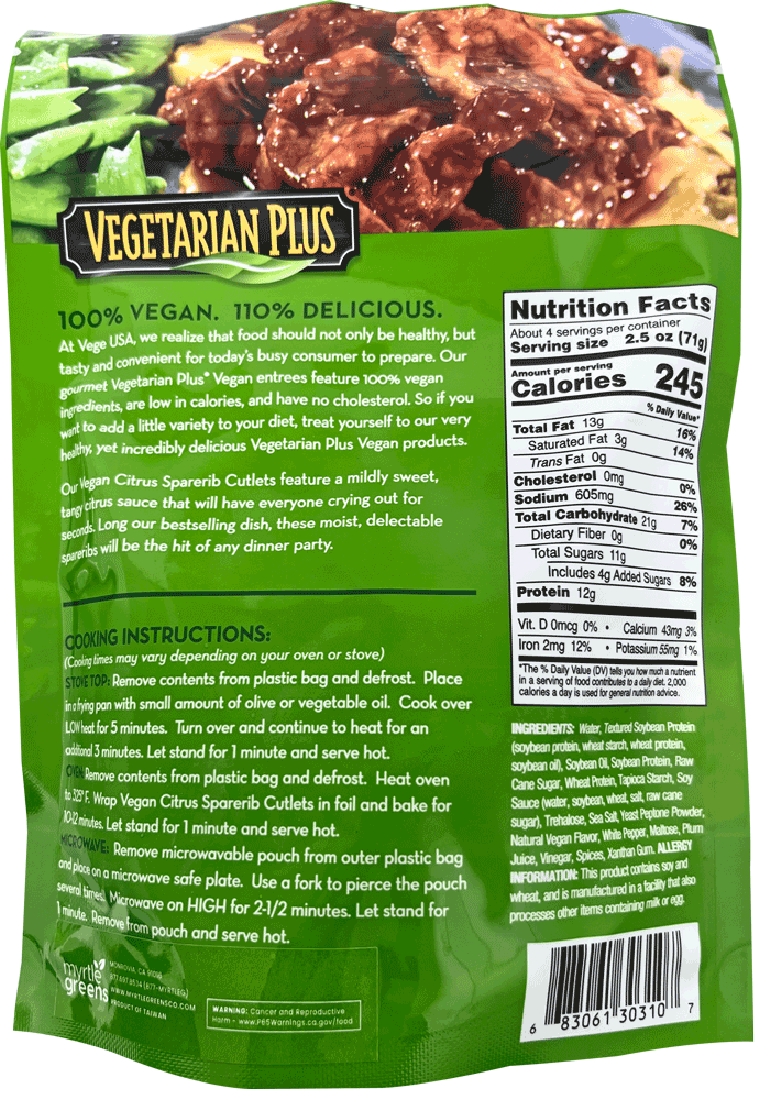 Vegetarian Plus Citrus Spare Rib Cutlets are so good, they’ll fool your meat-eating friends into thinking they’re eating the real thing (but of course, they’re all vegan!)