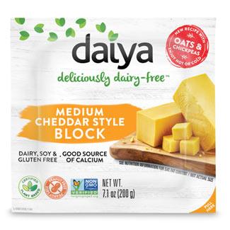 Daiya Medium Cheddar Style Block is a premium plant-based cheese offering that delivers the classic taste and texture of medium cheddar cheese without any dairy.