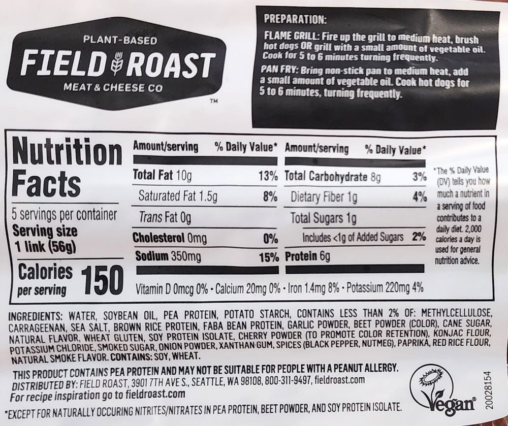 My mind was blown when I first tried these aptly named Stadium Dogs--they're exactly what you want when you're at a game. Hot dogs had been something a little difficult to nail down once I went full vegan. I tried plenty of brands that were delicious (including Field Roast's own frankfurters), but they didn't meet that classic backyard BBQ standard, they were instead their own, slightly different thing. These Stadium Dogs, on the other hand, are so perfect, you could serve them to anyone and they'd never realize they were vegan. They cook on the grill, in the pan, or even in the microwave. You can serve them on a toasted bun with mustard or BBQ sauce, or chop them up and add them to baked beans! Anything you'd use an animal hot dog for, these perform even better, because the flavor and cook up is the same, but you're eating way less yucky stuff, saving animals from harm, and making less negative impact on the global environment! Win-win-win-win!