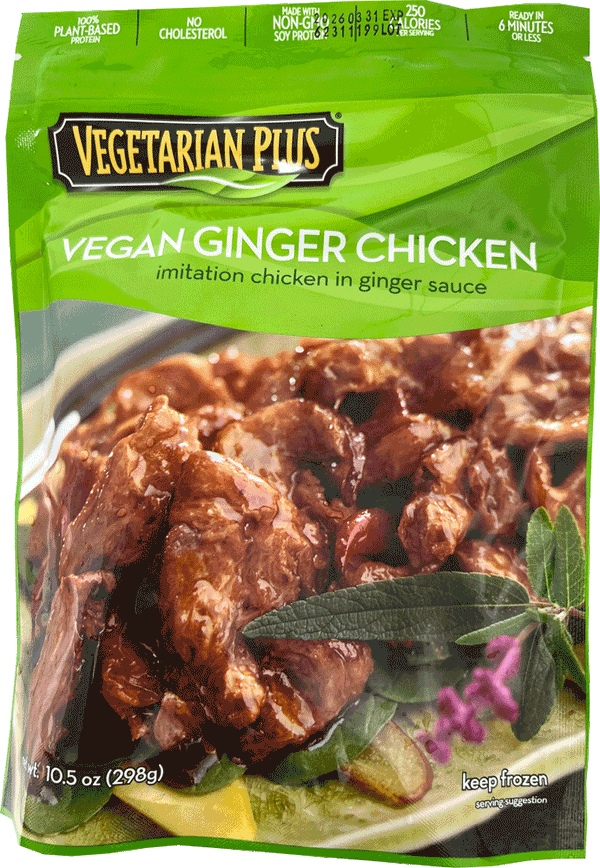 Vegetarian Plus Vegan Ginger Chicken is perfect by itself, or, served over rice or your favorite noodles.