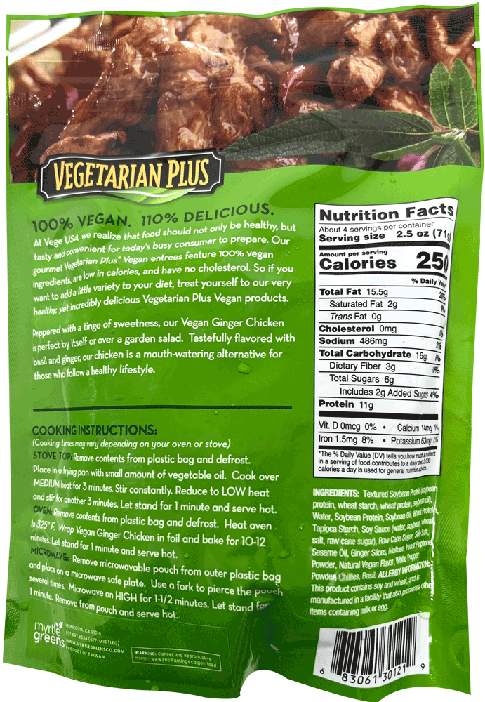 Tastefully flavored with basil and ginger, this is a mouth-watering alternative for those who have been seeking vegan options that are anything but plain! It makes a quick Vegan Oriental Chicken Salad when you heat and serve over your favorite salad greens, too! 10.5 oz. (297g) package.