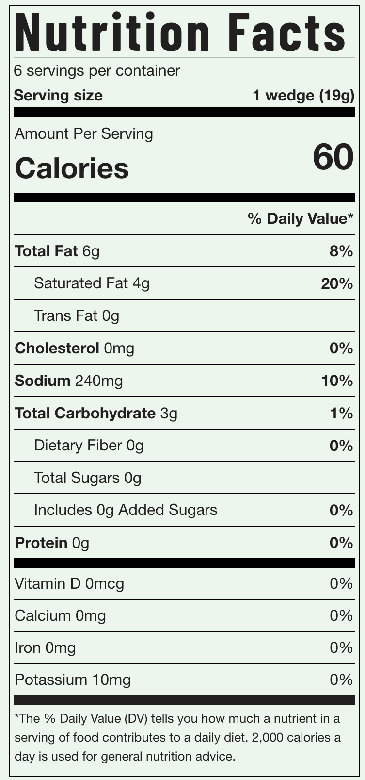 Savory, snackable, and Keto Certified plant-based wedges are here! 6 wedges that are full of flavor and individually wrapped for tasty on-the-go convenience, delicious on a charcuterie board, or tossed into a lunchbox!