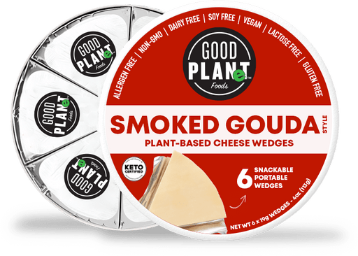 As the king of smoked cheeses, Smoked Gouda Plant-Based Cheese Wedge by Good Planet is a sustainable, allergen free choice that tastes like the real thing!