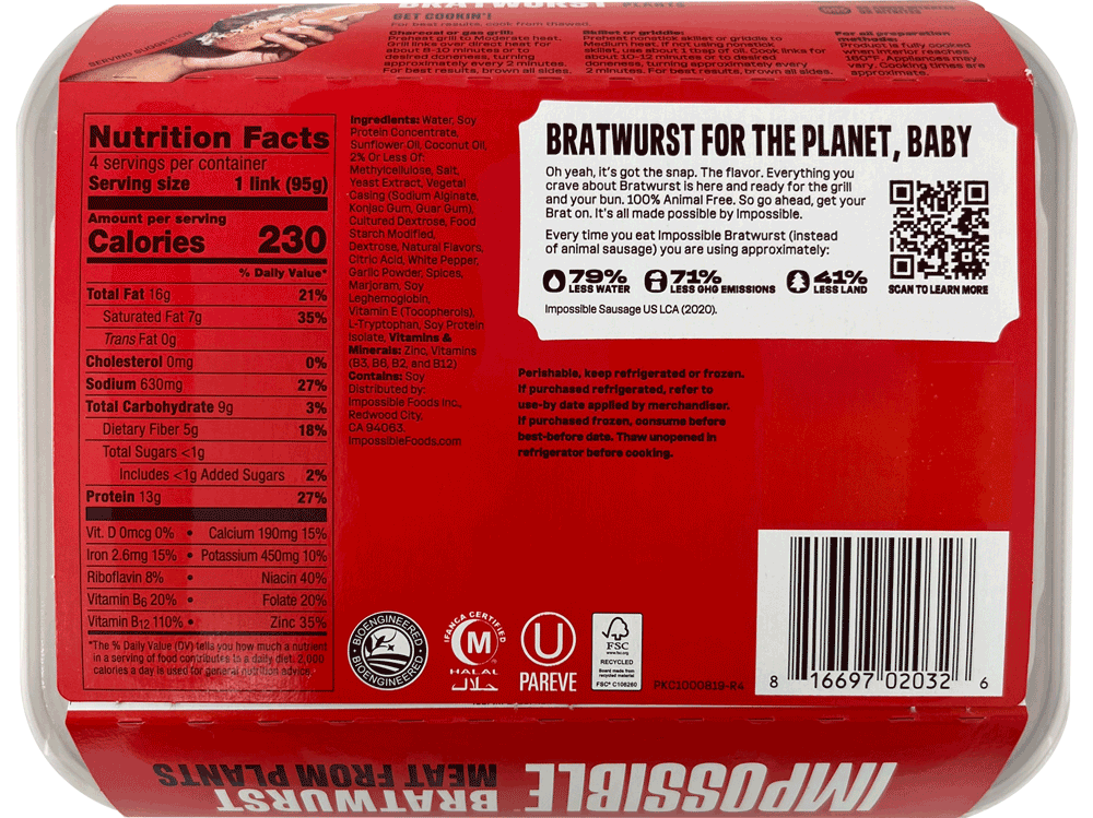 Sometimes, satisfying our hankering for a plump, succulent, and savory sausage seems like an impossible task. Thanks to Impossible’s Bratwurst Sausage Links, that’s now…well… possible! Easily swap out regular sausages with this tasty thing and Bob's your uncle!