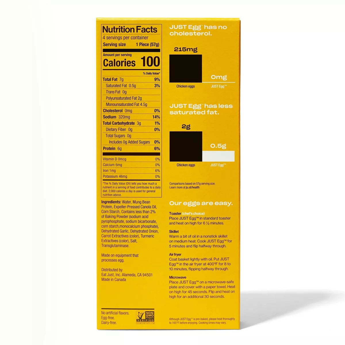 Each 8 oz. (227g) box contains 4 folded Just Egg portions. Experience the unparalleled taste, convenience, and sustainability of Just Egg Folded—your breakfast companion that cares for both you and the planet.
