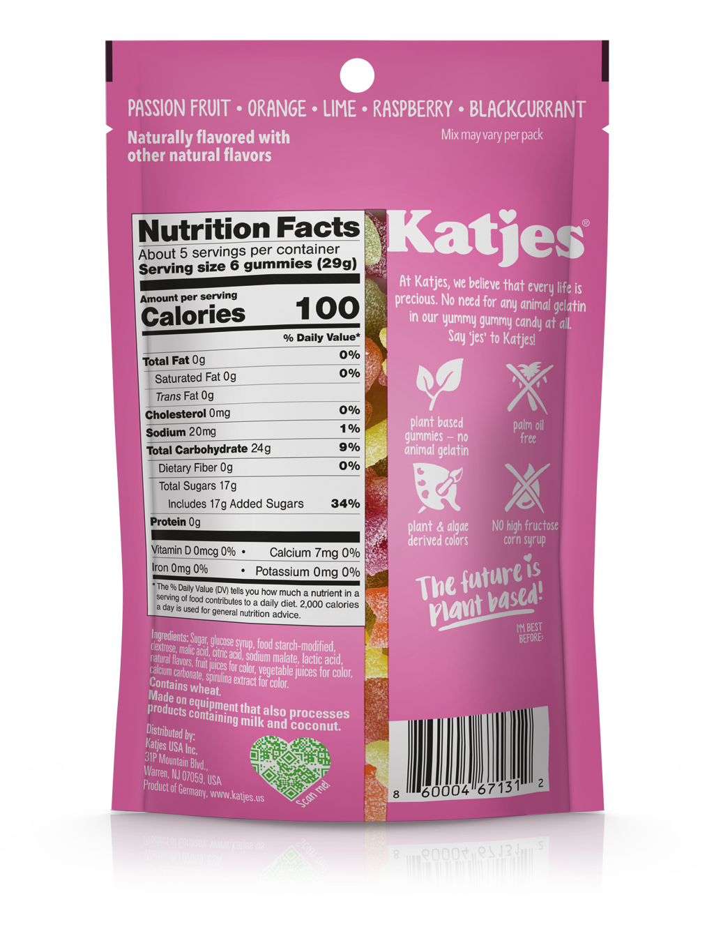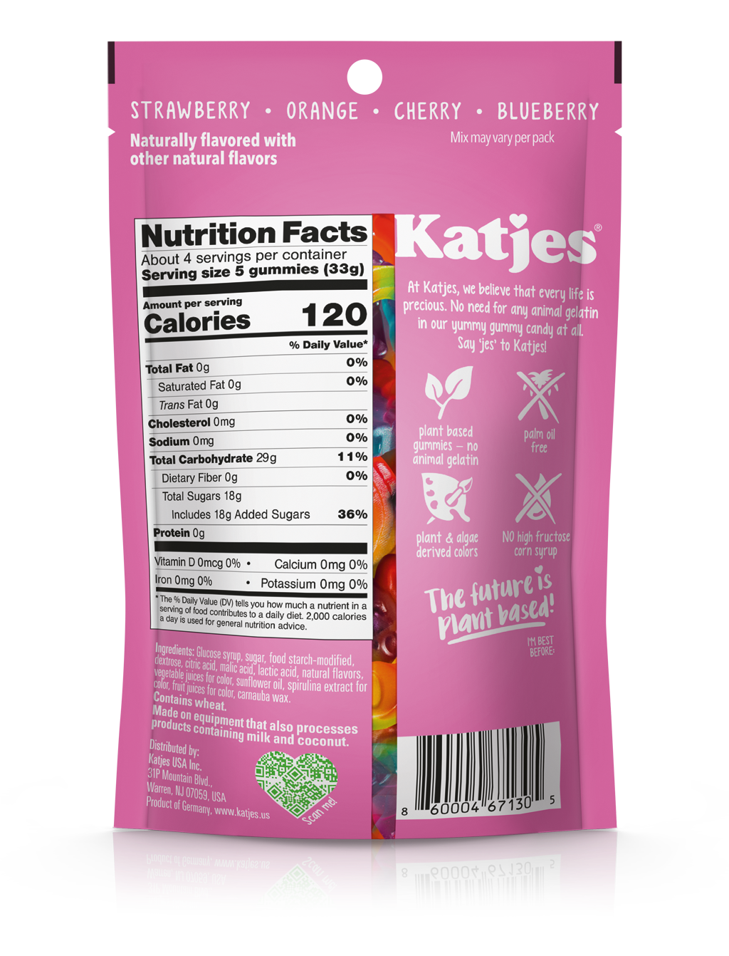 Glucose Syrup, Sugar, Food Starch-Modified, Dextrose, Citric Acid, Potato Protein, Natural Flavors, Sunflower Oil, Vegetable Juices For Color, Fruit Juices For Color, Carnauba Wax.