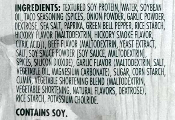 I was very impressed how good this product was and how incredibly easy it was to make. Sixty seconds in the microwave and you have a super easy meal. I just added tomatoes on top of my taco and it was indistinguishable from a meat taco. They were delicious. The package yielded about seven tacos. If you don't like the taste of the filling by itself try it with tomatoes. It makes all the difference.