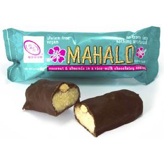 If you crave a gently sweetened coconut candy bar topped with three whole dry roasted almonds and covered in a luscious chocolatey coating… hang loose, the Mahalo bar is for you!