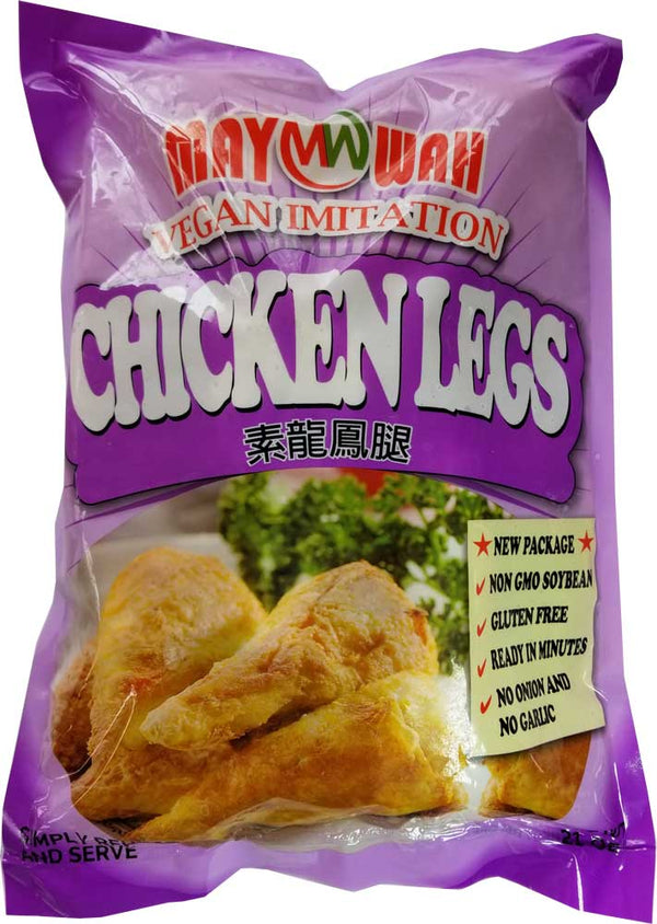 May Wah vegan, medium-sized "chicken" legs on a bamboo skewer. Great texture and flavor makes these the perfect snack, meal, or appetizer.