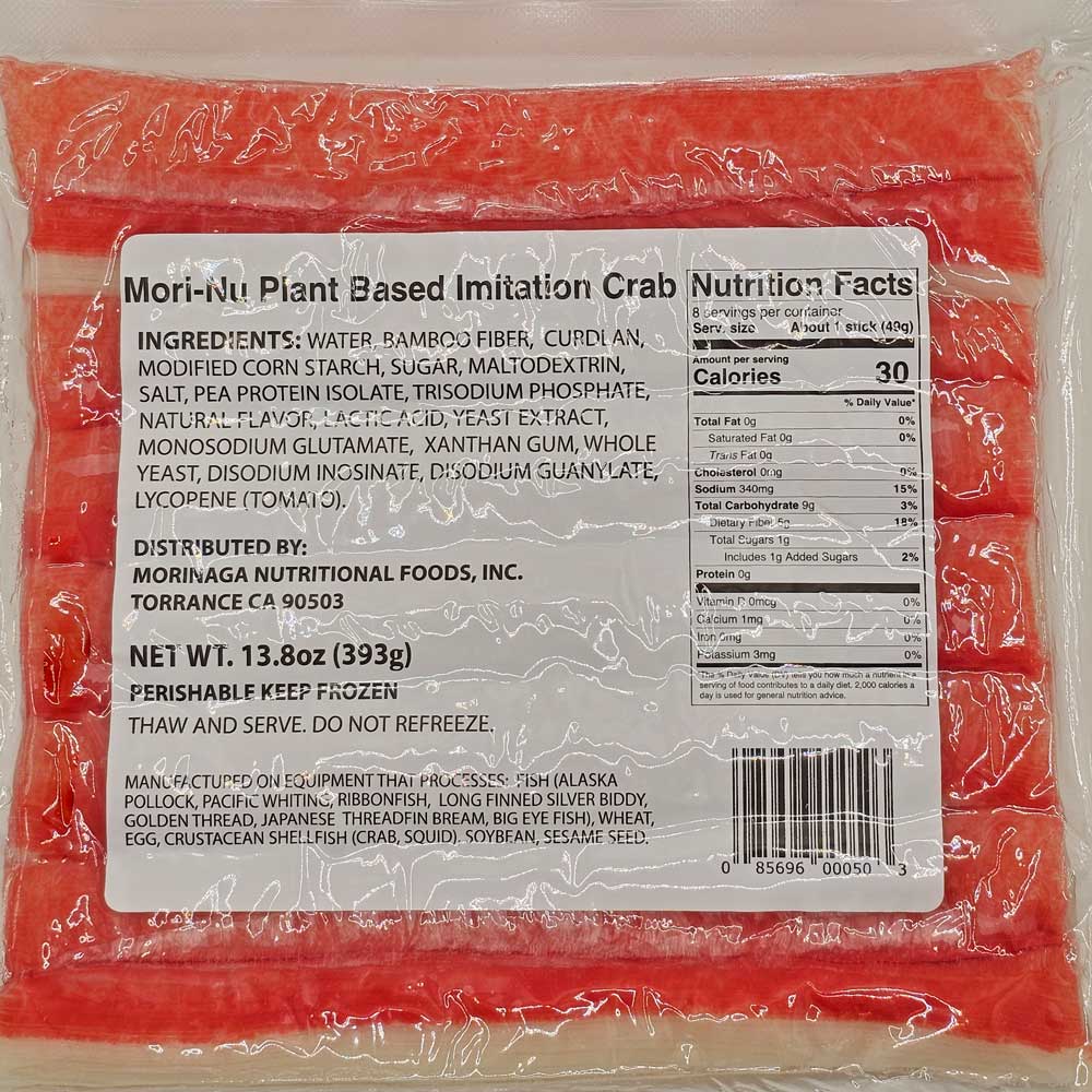 Crab has a unique taste and texture that people have come to love and crave. Most imitation crab still contains fish, crab, and other animal-based products. Mori-Nu's plant-based imitation crab is 100% plant-based! Use it to make delicious crab sushi rolls, crab salads, crab cakes, casseroles and more.