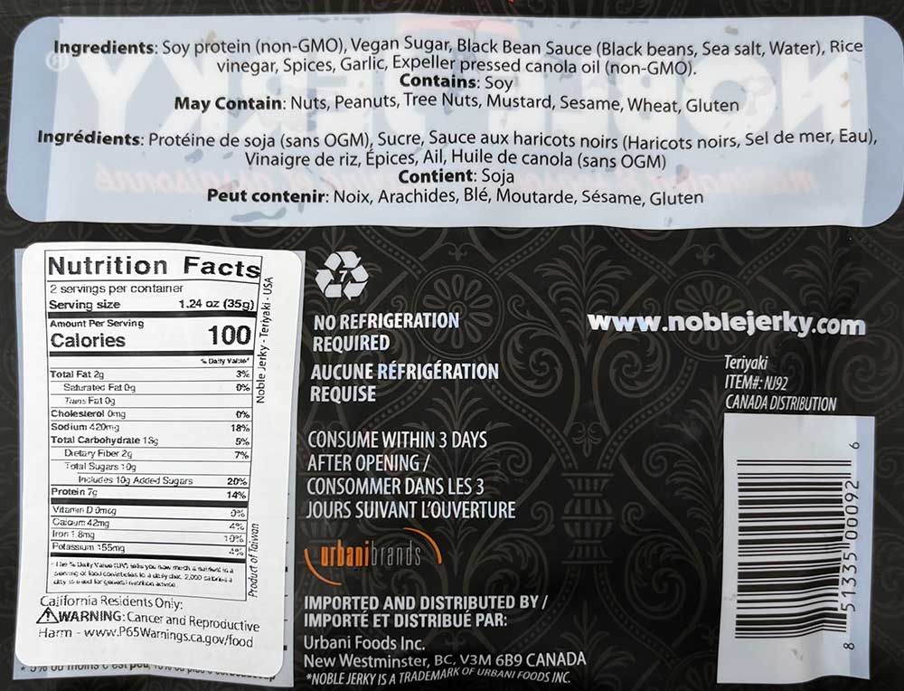 Ingredients Teriyaki: Non-GMO soy protein, vegan sugar, black bean sauce (black beans, sea salt, water), rice vinegar, spices, garlic, non-GMO expeller pressed canola oil