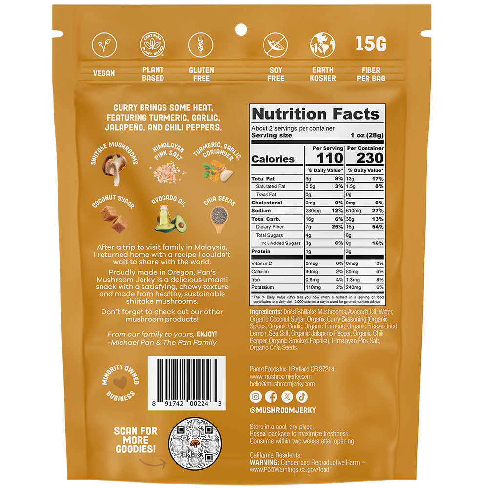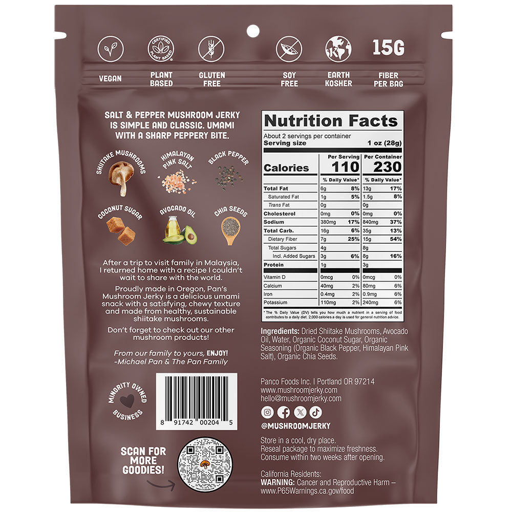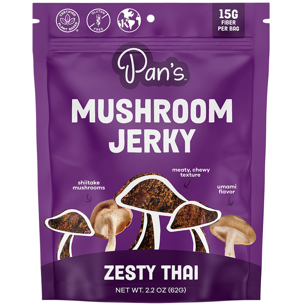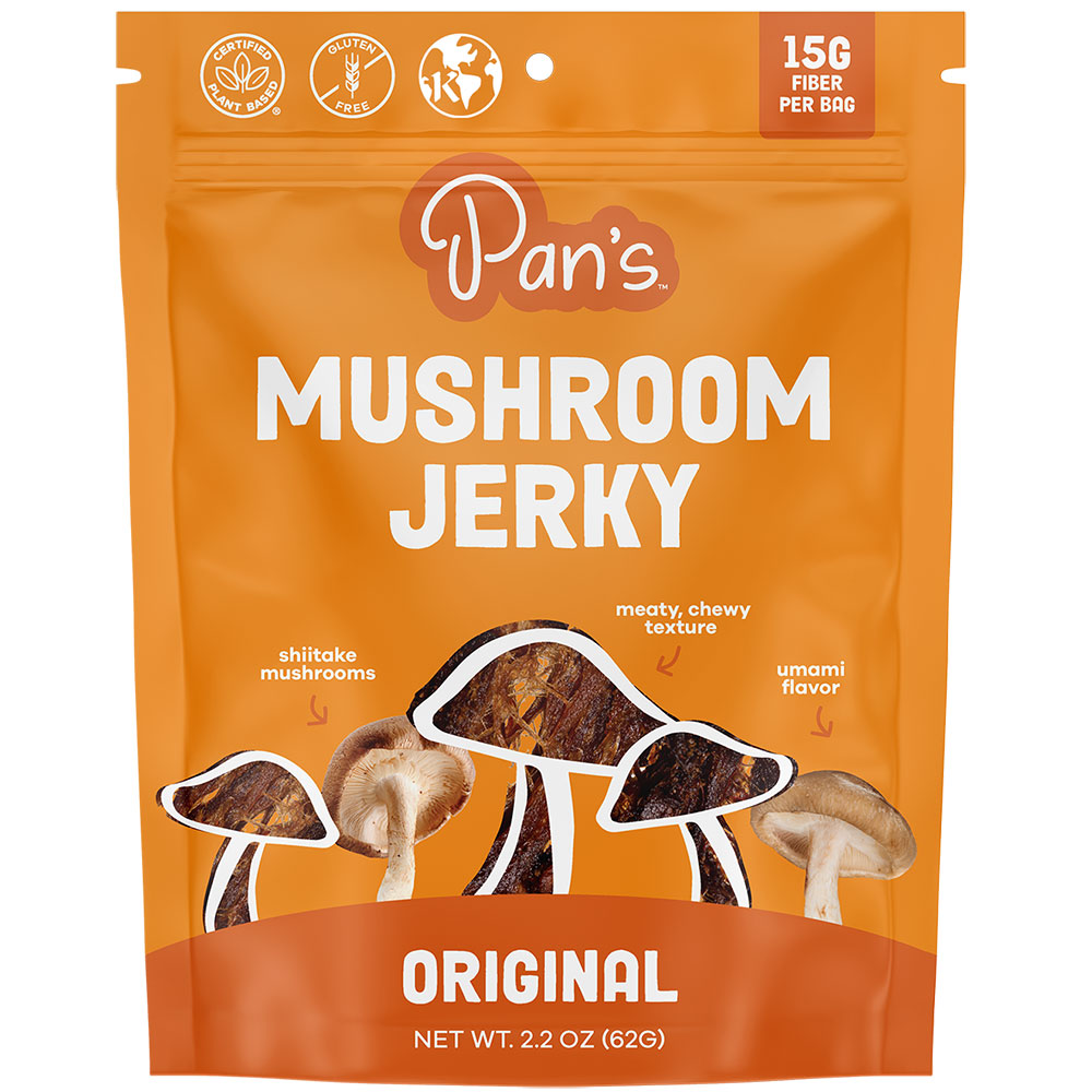 Pan's Mushroom Jerky is deliciously tender and chewy vegan jerky made with shiitake mushrooms for a savory taste with just a little bit of kick! The Pan family has made their amazing gluten-free vegan jerky for decades, originally in Malaysia and now it's available in the USA for everyone to enjoy! A perfect blend of flavor and texture that both vegans and non-vegans alike will love, it's high in fiber, and each package also contains a full day's RDA of vitamin D, too!