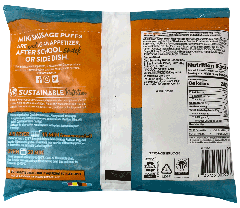 Made with Quorn's amazing mycoprotein that's derived from fungi instead of the usual soy, wheat or pea protein sources, these little sausages wrapped in puff pastry are packed with protein, and cook quickly in the stove or in the microwave.