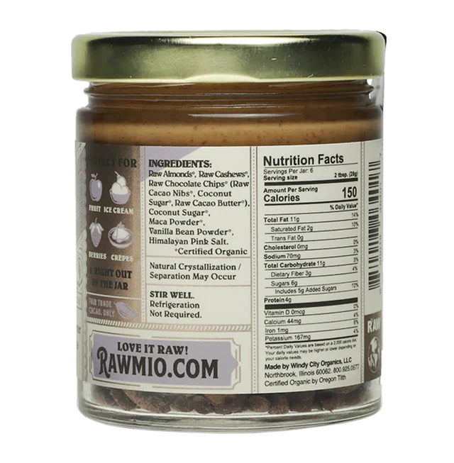 Crafted from a creamy blend of almond and cashew butter, this decadent spread is swirled with raw Rawmio chocolate chips, energizing maca root, real vanilla bean, and mineral-rich Balinese coconut sugar for that perfect balance of sweet, nutty, and chocolatey bliss. It’s comfort food made clean—vegan, gluten-free, and free of refined sugar or oils.