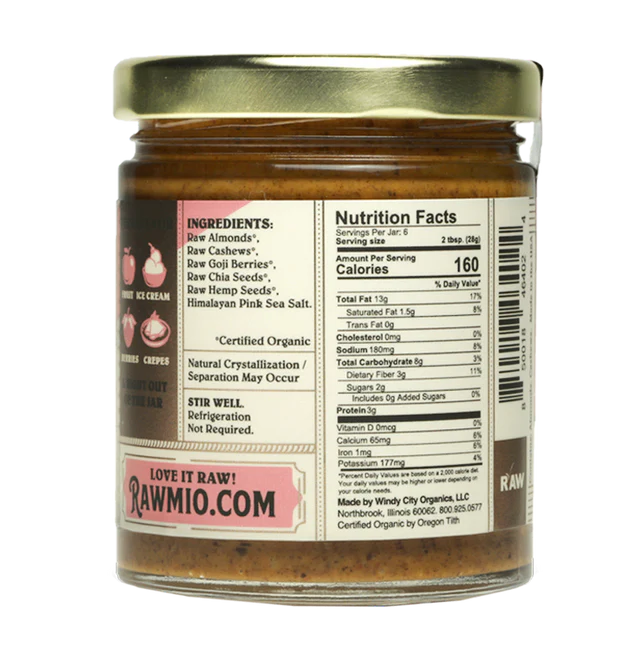 Ingredients: Raw Almonds, Raw Cashews, Raw Goji Berries, Raw Chia Seeds, Raw Hemp Seeds, Himalayan Pink Sea Salt.