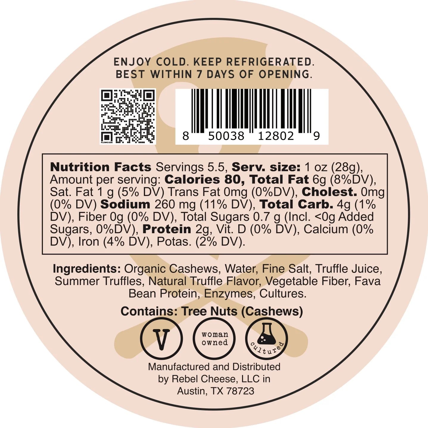 Organic Cashews, Water, Fine Salt, Truffle Paste, Penicillium Candidum, Cultures.