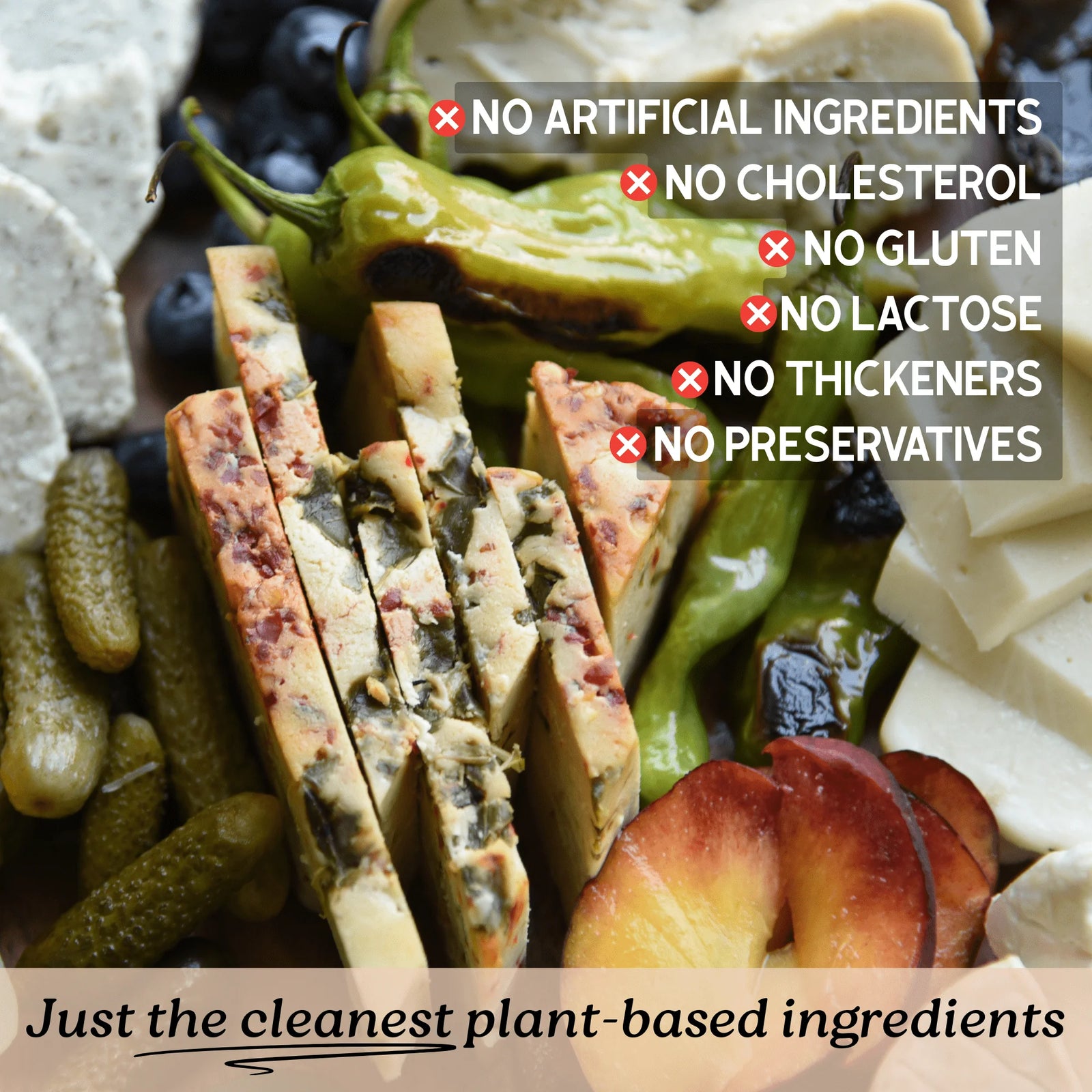 Almond Milk, White Rice Flour, Organic Coconut Oil, Organic Cashews, Roasted Jalapeño, Fine Salt, Organic Mellow White Miso, Nutritional Yeast, White Vinegar, Lactic Acid, Red Chili Flakes, Olive Oil, Onion Powder.