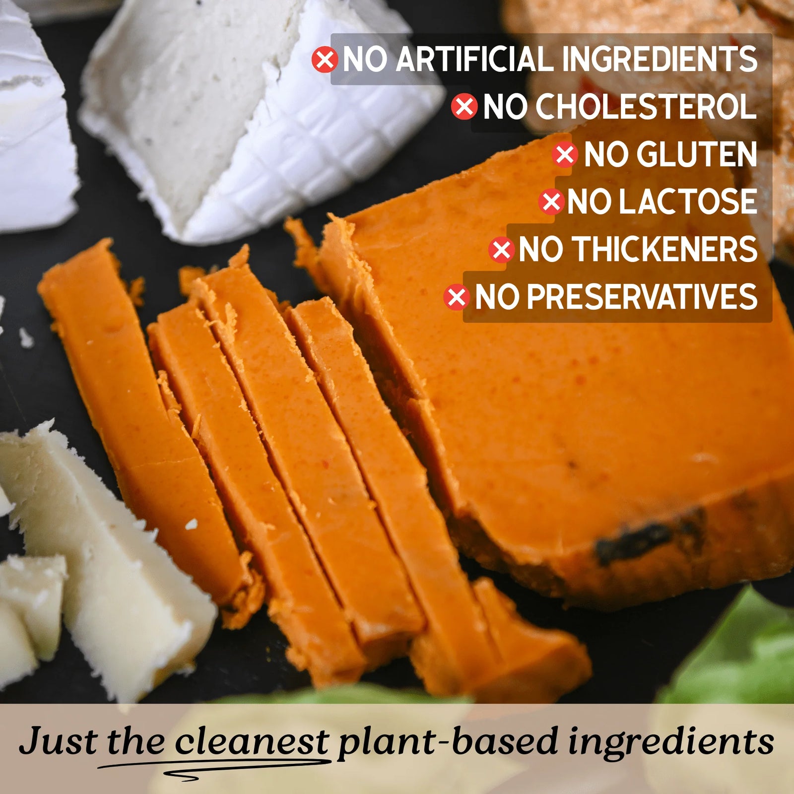 Rebel Cheese’s Vegan Smoked Cheddar is crafted with high-quality, plant-based ingredients to ensure a rich, authentic flavor without dairy. It is an excellent source of taste while being free from animal products, making it suitable for a wide range of dietary preferences.