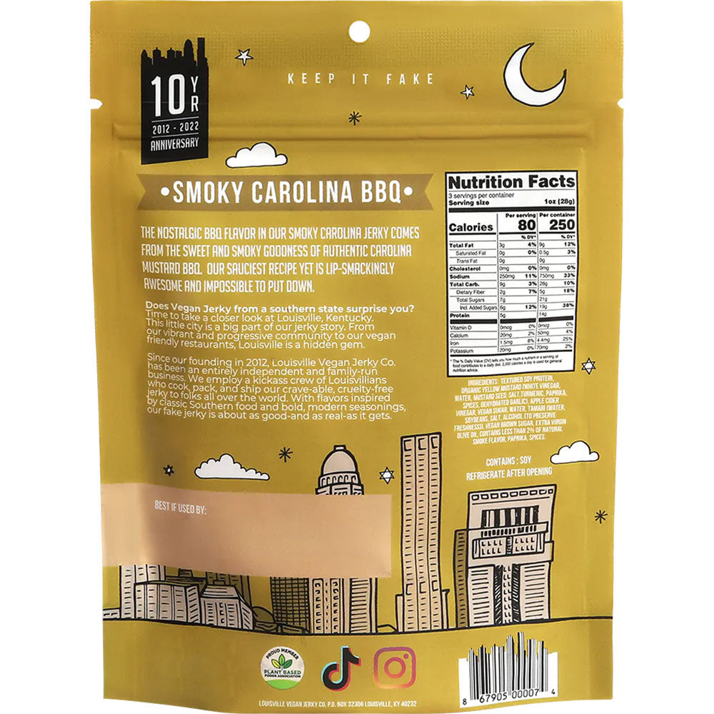 This Smoky Carolina BBQ Jerky is made with authentic Carolina mustard BBQ suace, giving you a BBQ flavor that's unlike all the rest with unique flavor you'll want to enjoy again and again. It's gluten-free and has only 80 calories per serving!