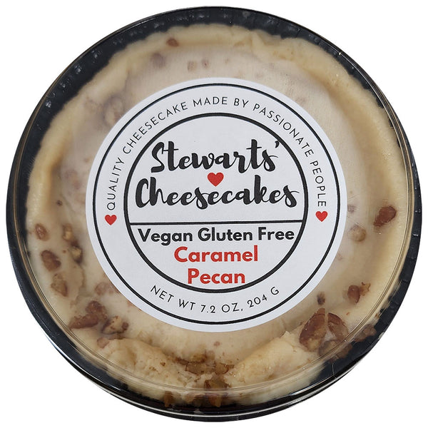 Who doesn't love cheesecake? Stewarts' Cheesecakes, mini 4-inch Vegan Caramel Pecan Cheesecake will hit the spot. That wonderfully delicious treat that makes dessert or snack time so special!