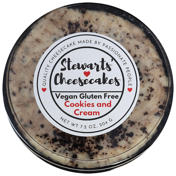 Who doesn't love cheesecake? Stewarts' Cheesecakes, mini 4-inch Vegan Cookies and Cream Cheesecake will hit the spot. That wonderfully delicious treat that makes dessert or snack time so special!