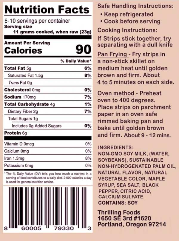 Salt-cured and smoked just like pork bacon, Thrilling Foods Bakon brings you all of the smell, texture and umami flavor of bacon without the cruelty.